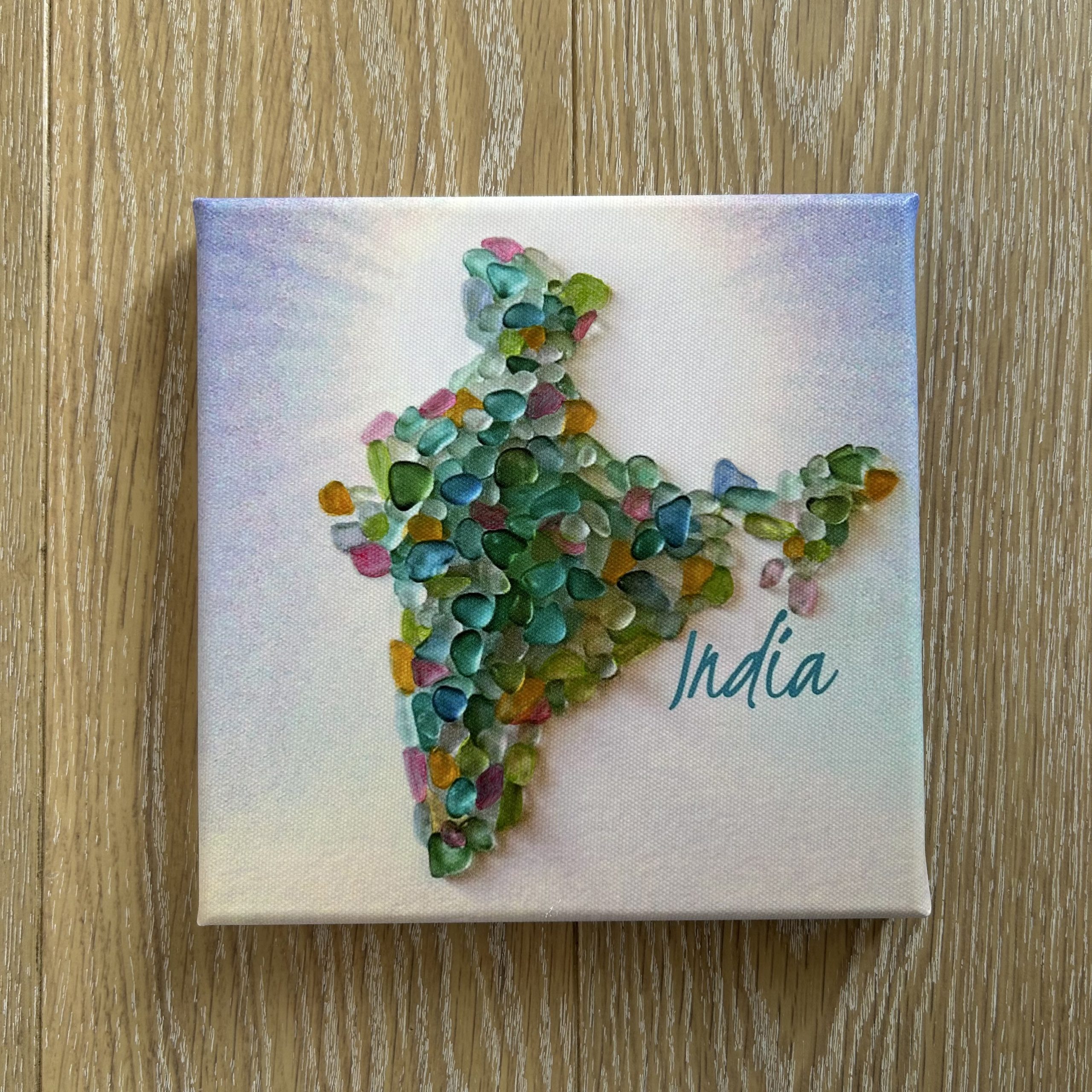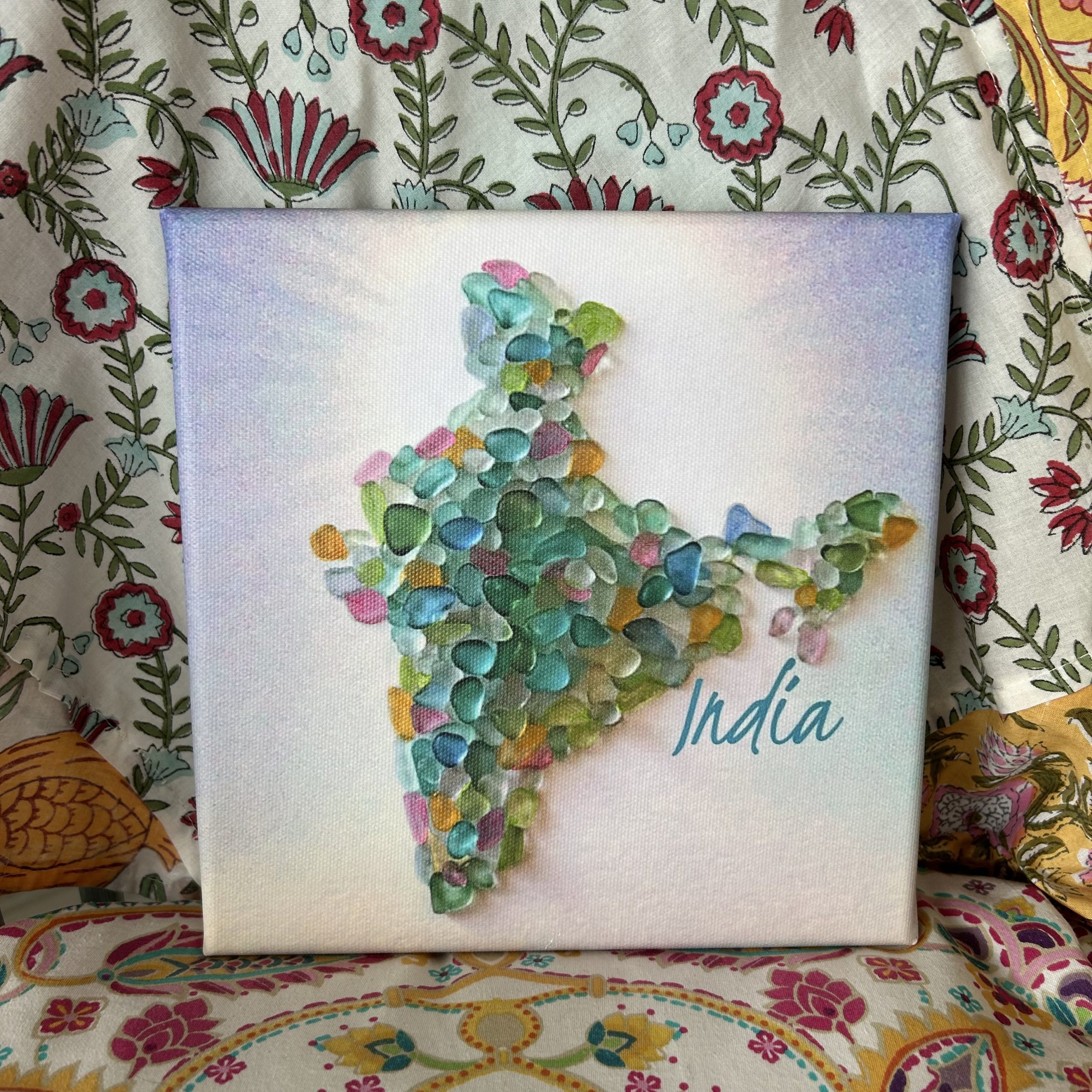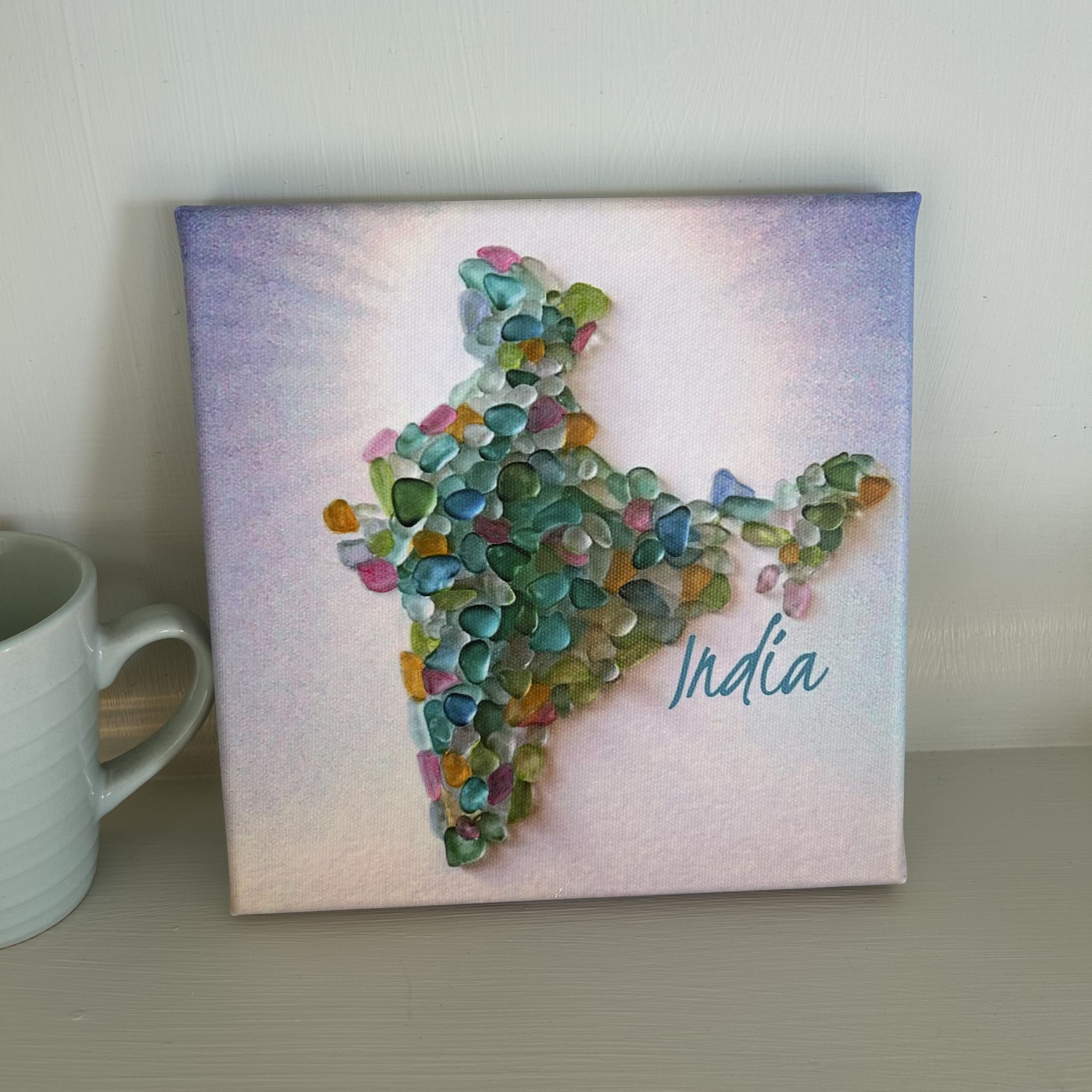 The colours of India!  Our small canvas photo print is 20cm x 20cm and hand finished in acrylic (not actual glass)